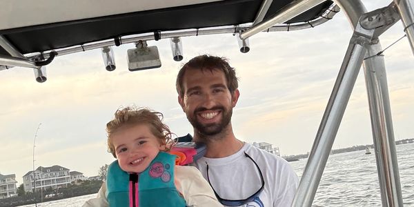 When he is not running charters , he enjoys fishing, crabbing and spending time on the water with his wife and their 3 young kids.